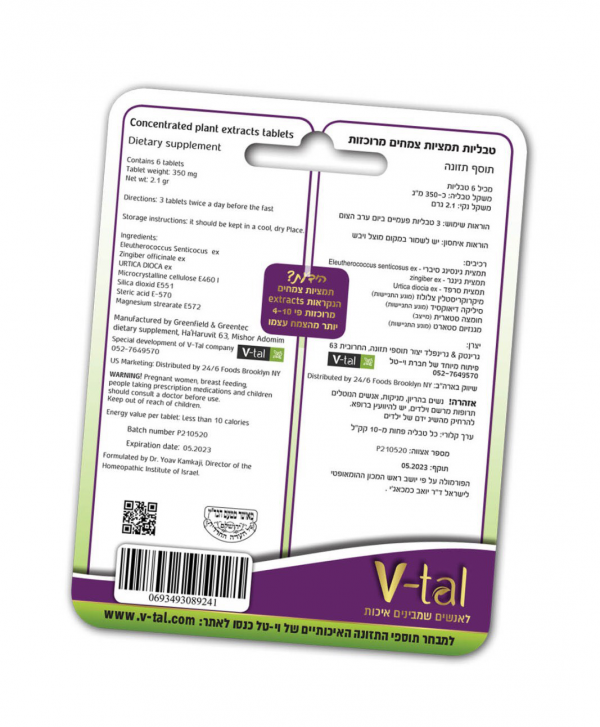 הפלא צום של ויטל, מורכב מפורמולת extract משופרת וייחודית העשויה רק מתמציות צמחים. טבליות הצמחים המרוכזות חזקות לפחות פי 4 מכל טבליות צמחים אחרות.